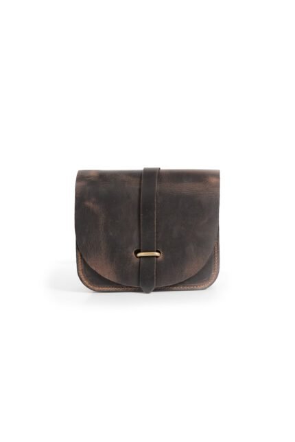 tan wax Leather mini buckle purse for women with secure flap and adjustable strap by Jirakis Leather.