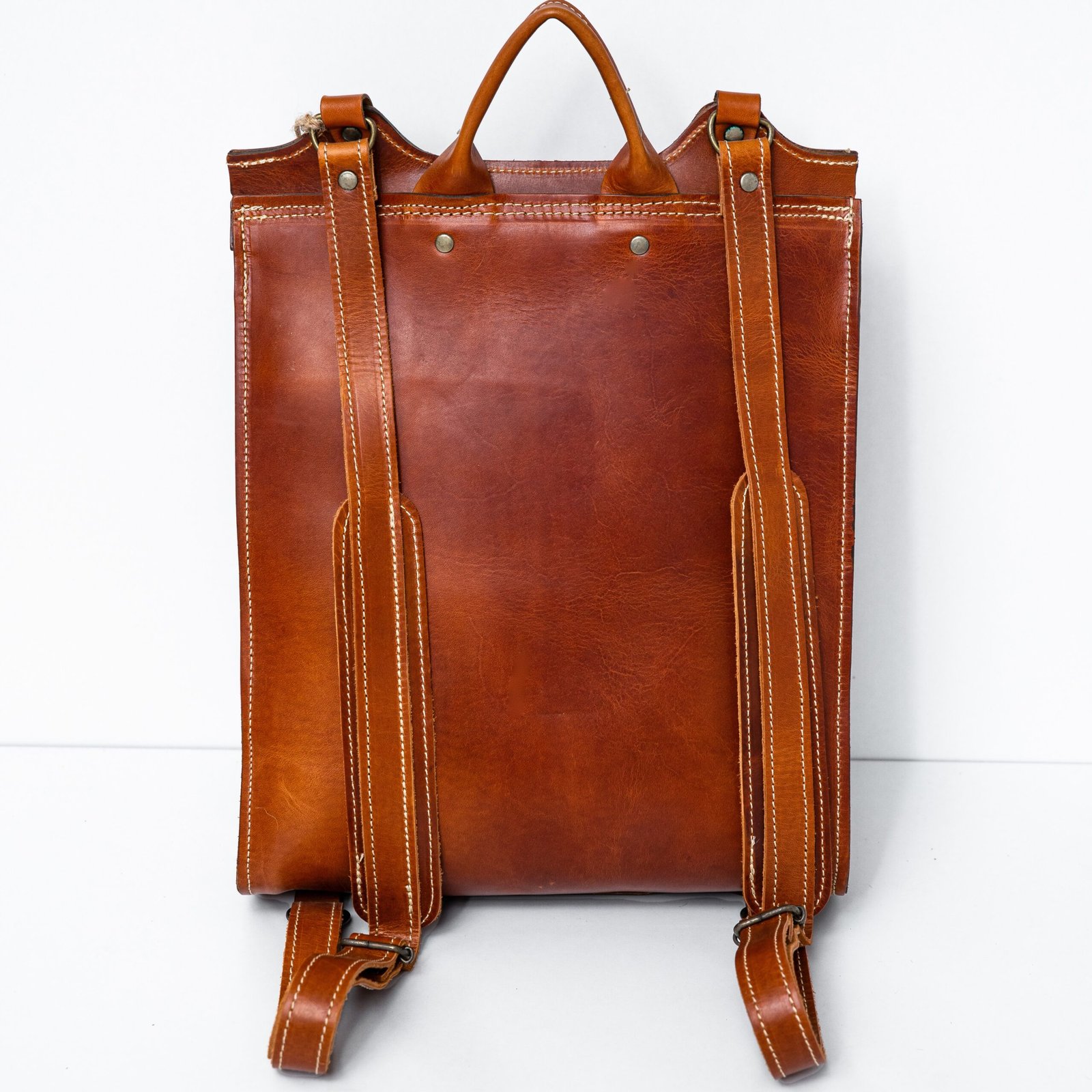 A secure flap top protects the spacious main compartment, while the signature buckle pocket on the front keeps your phone, keys, or tickets within easy reach. Reinforced straps and sturdy hardware ensure this leather backpack is ready for years of daily use.