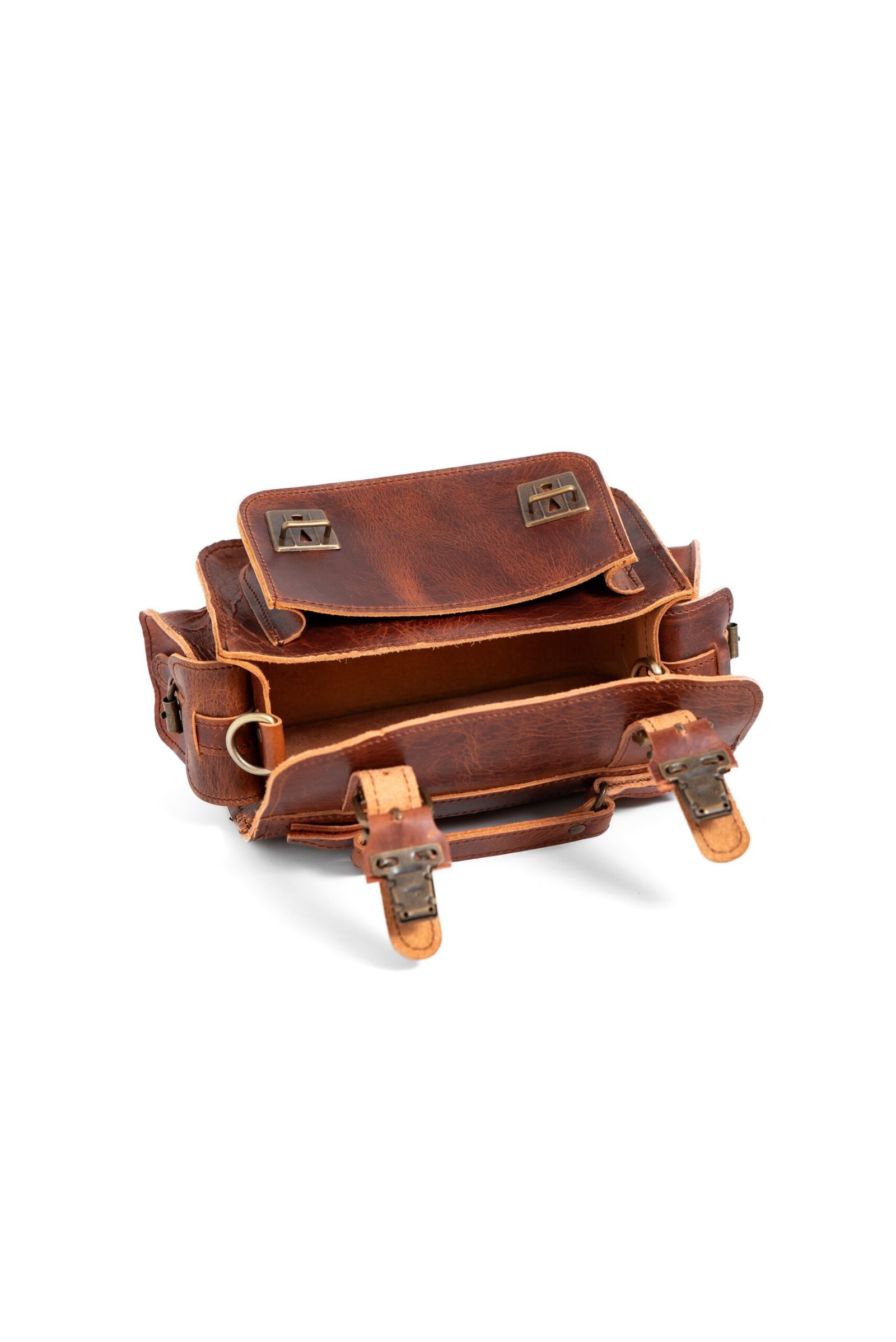 Black Leather buckle satchel with multiple pockets and vintage hardware – Jirakis Leather Black Small brown leather camera case with rugged buckle details and compact multi-pocket design – Jirakis Leather Brown