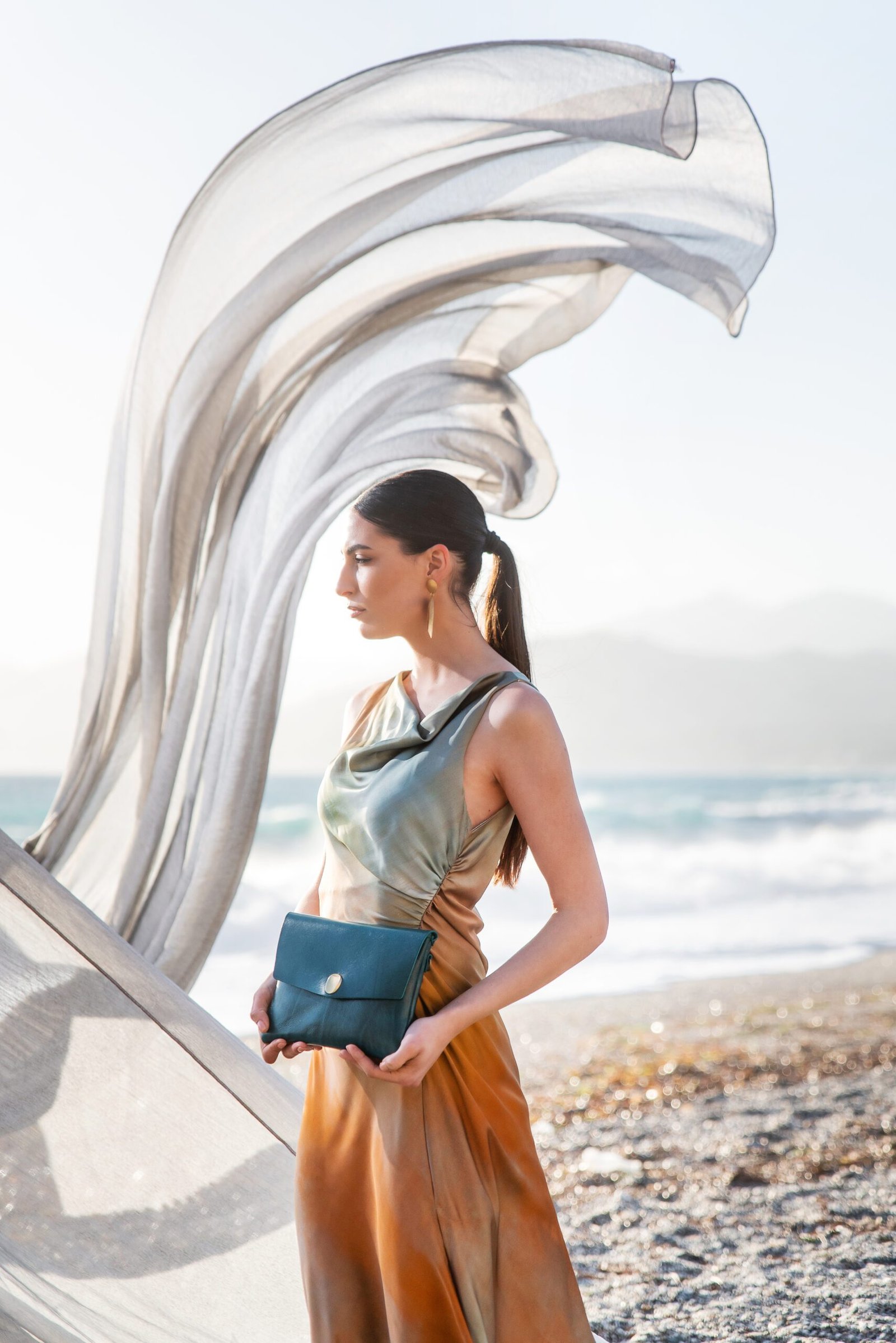 Inspired by the artistry of the ancient Minoan civilization, the Minoan Twist clutch brings together elegance and versatility. Crafted from premium leather with a unique textured print, this bag is designed to make a statement. The adjustable strap allows you to effortlessly transition from a chic clutch to a convenient crossbody bag, offering style and practicality for any occasion. Whether you’re heading out for a casual day or an evening event, the Minoan Twist combines modern functionality with timeless Greek-inspired design.