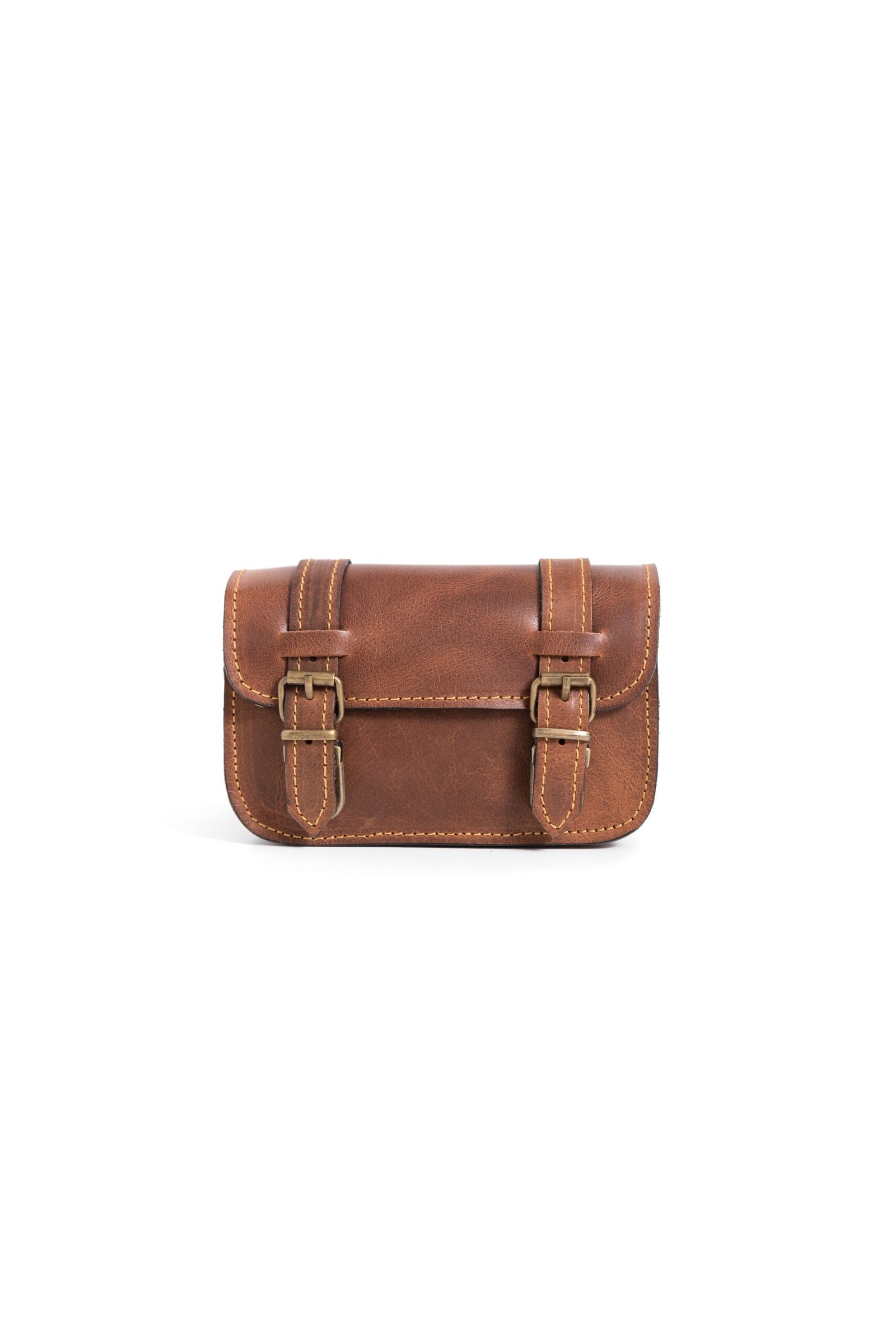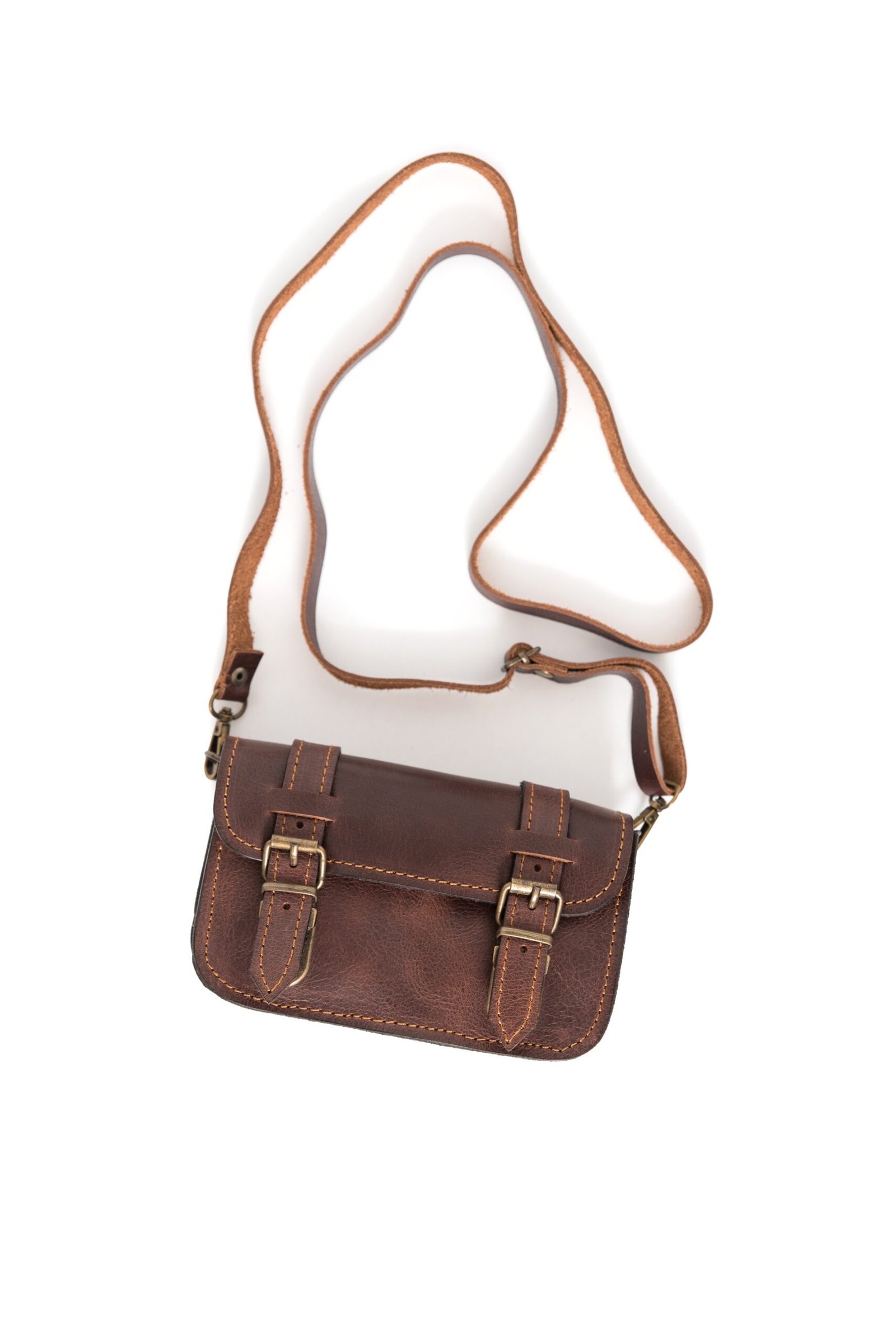 The front flap closes with a sturdy buckle, adding vintage style while protecting what’s inside. Inside, there’s just enough space for your phone, slim wallet, keys and small essentials. So you stay light on your feet and ready for the day.
