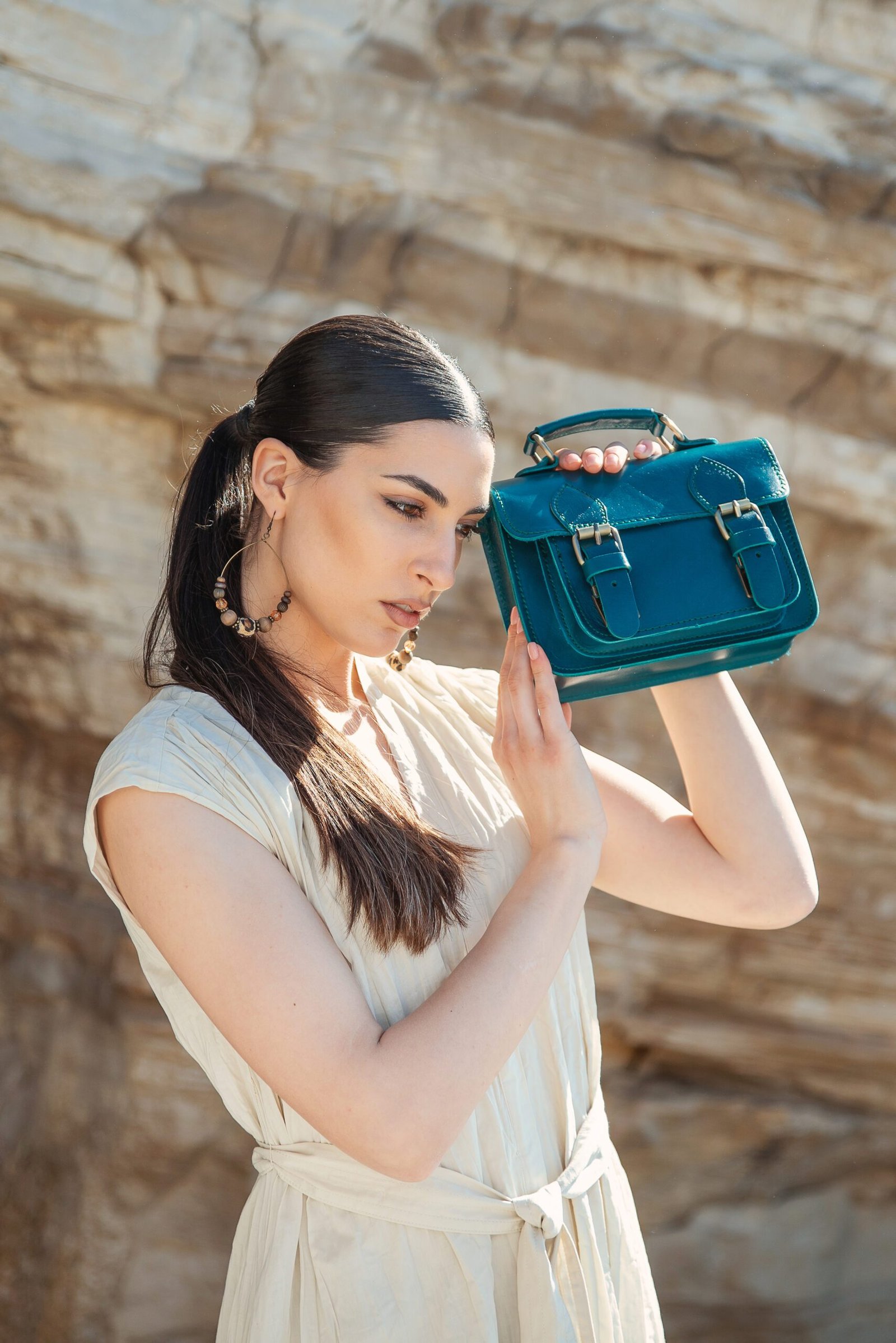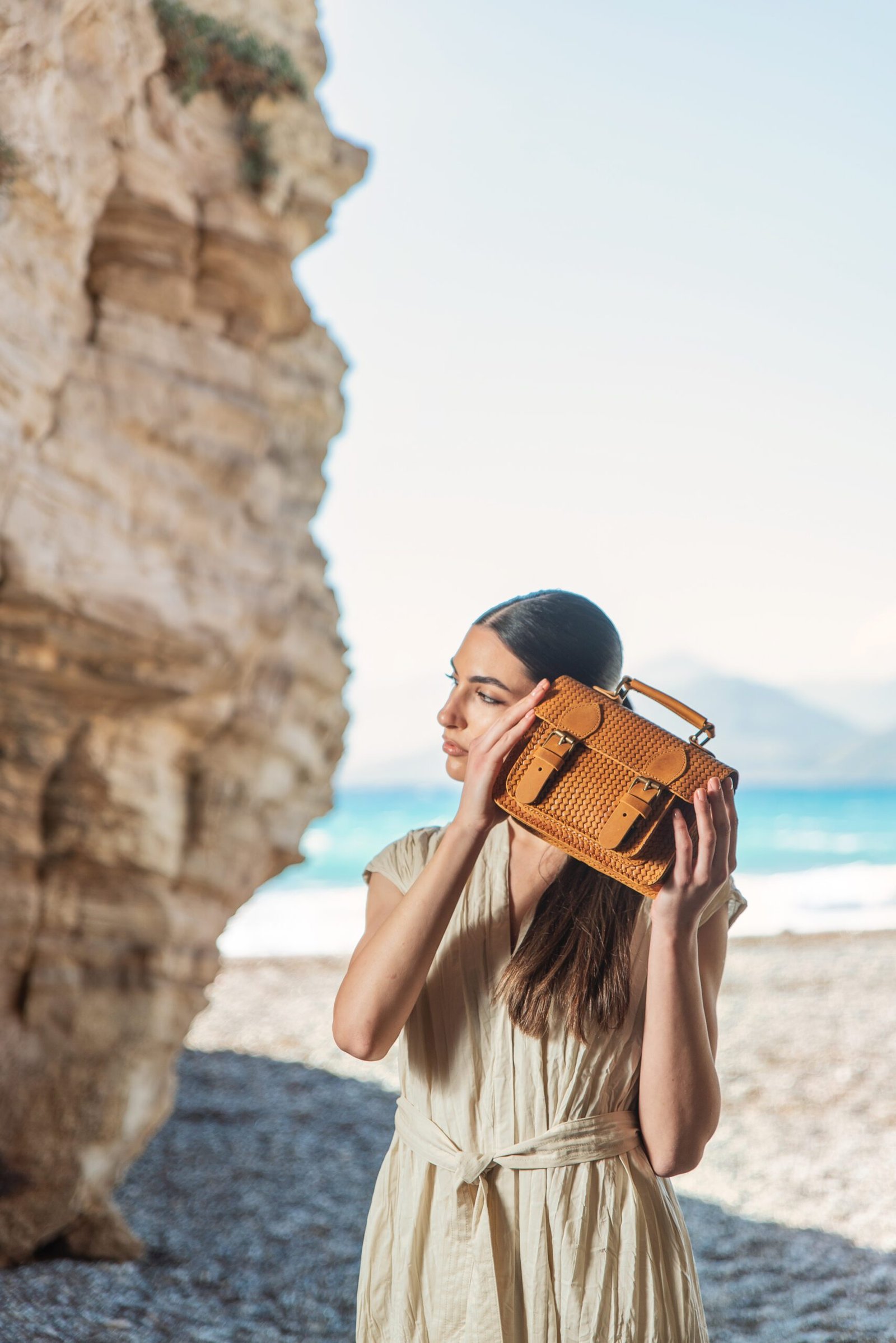 We craft each buckle bag in Crete using genuine leather that softens naturally with time. Because the leather is high quality, it develops a beautiful patina that tells your story each season you carry it. The structured shape keeps your phone, wallet, keys, and other small items tidy and easy to find.