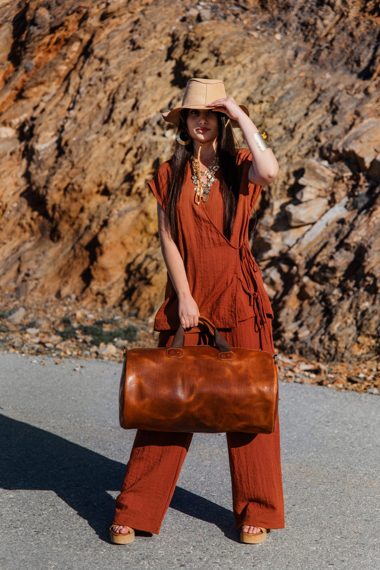 Each bag is handmade in Greece using traditional leatherworking techniques, reflecting craftsmanship, authenticity, and attention to detail. Slight variations in color and texture are part of the material’s natural character, making every piece truly one of a kind.