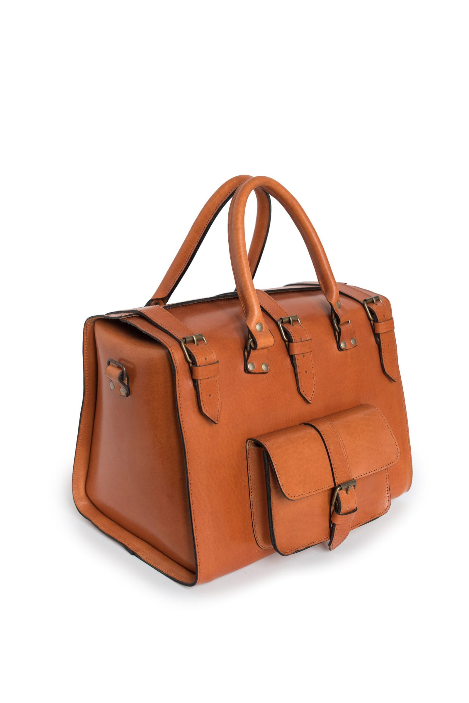 The structured silhouette feels refined but practical. Sturdy top handles sit comfortably in your hand or over your arm. When you need extra freedom, attach the detachable shoulder strap to wear it crossbody and keep your hands free. The signature front pocket, secured with a classic buckle, keeps your essentials within easy reach. This detail blends vintage charm with modern function.